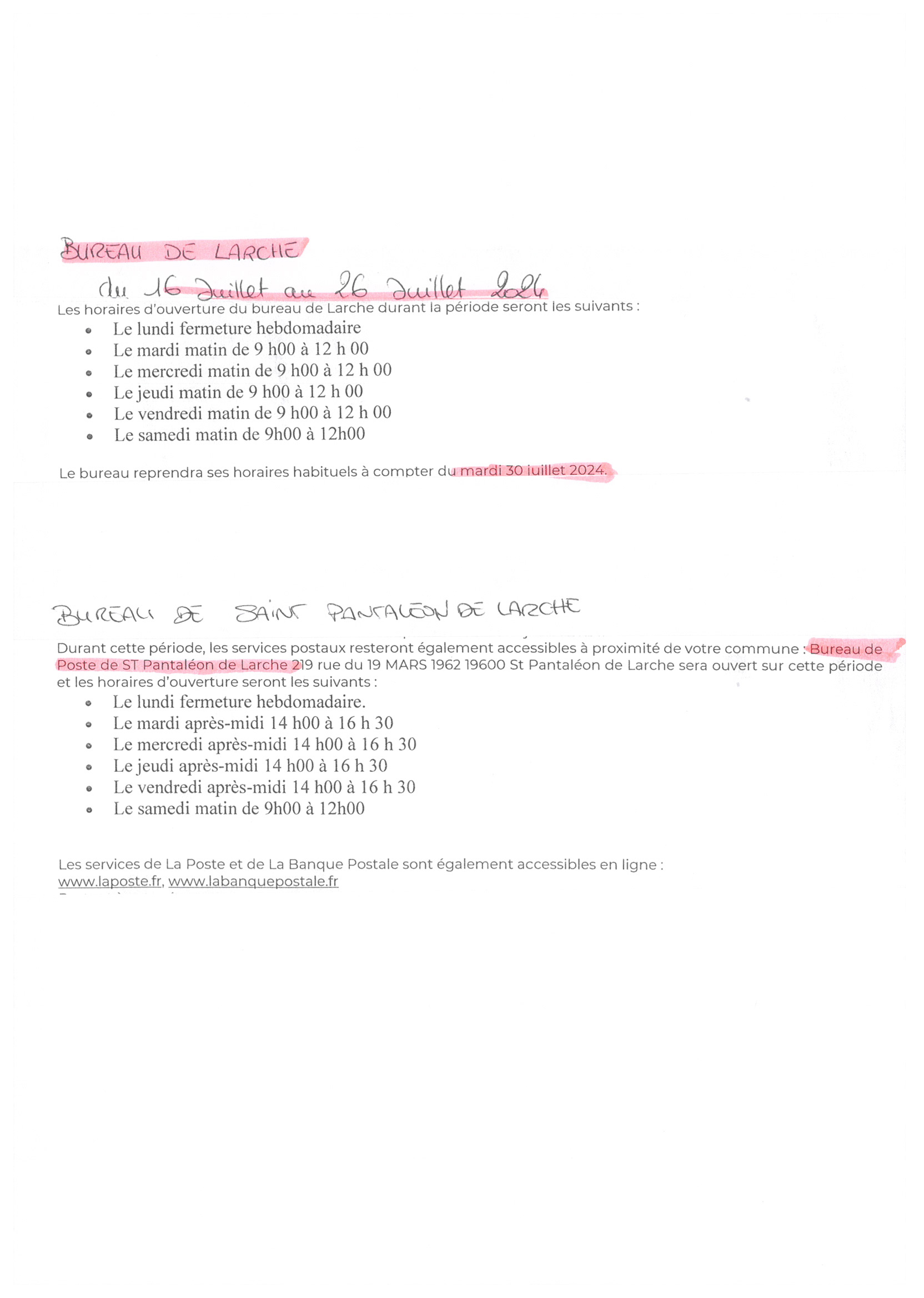 LA POSTE Horaires