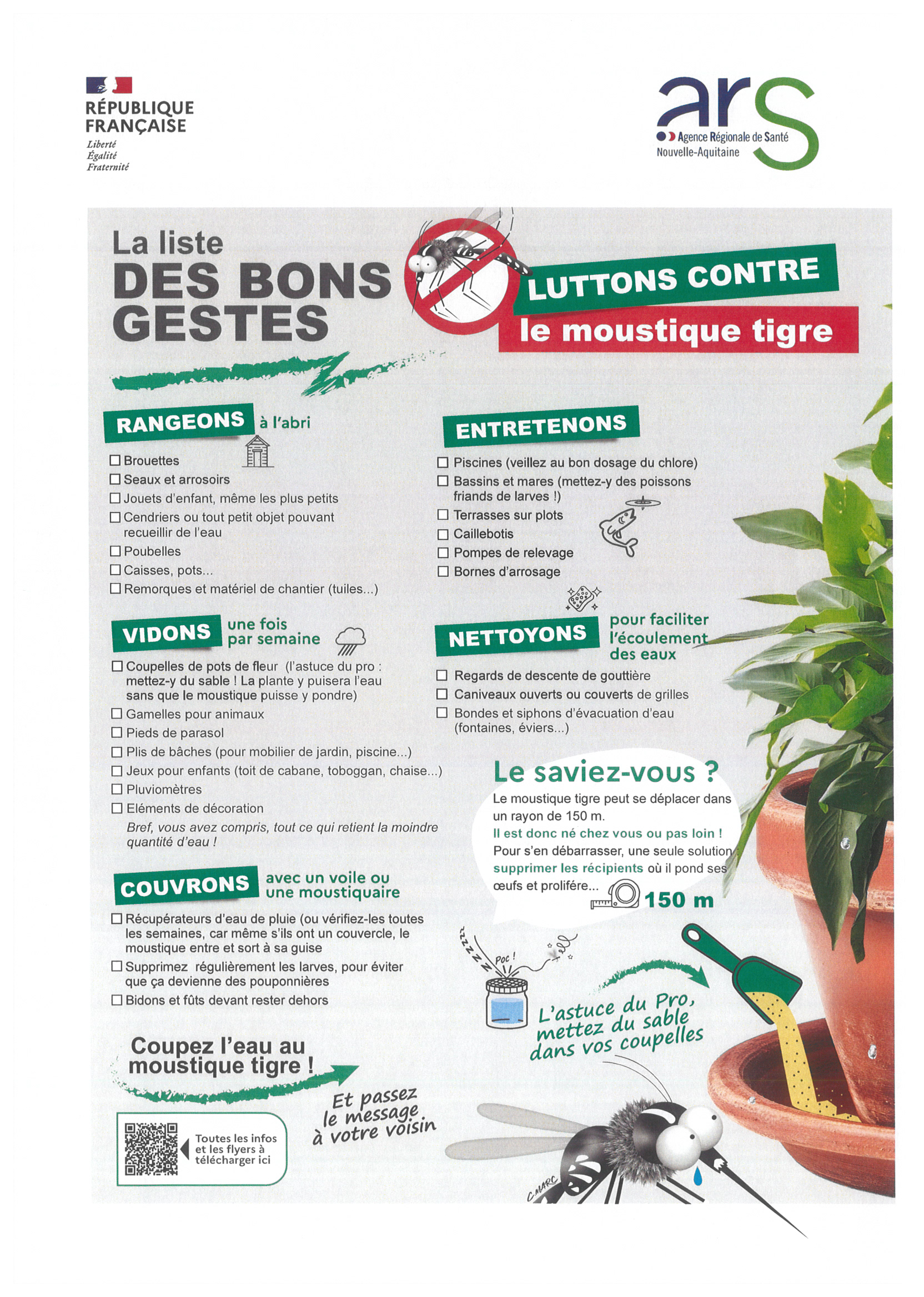Sur demande de l'Agence Régionale de Santé, des traitements ciblés contre le "moustique tigre" (Aedes albopictus) doivent être mis en oeuvre sur certains secteurs de la commune.